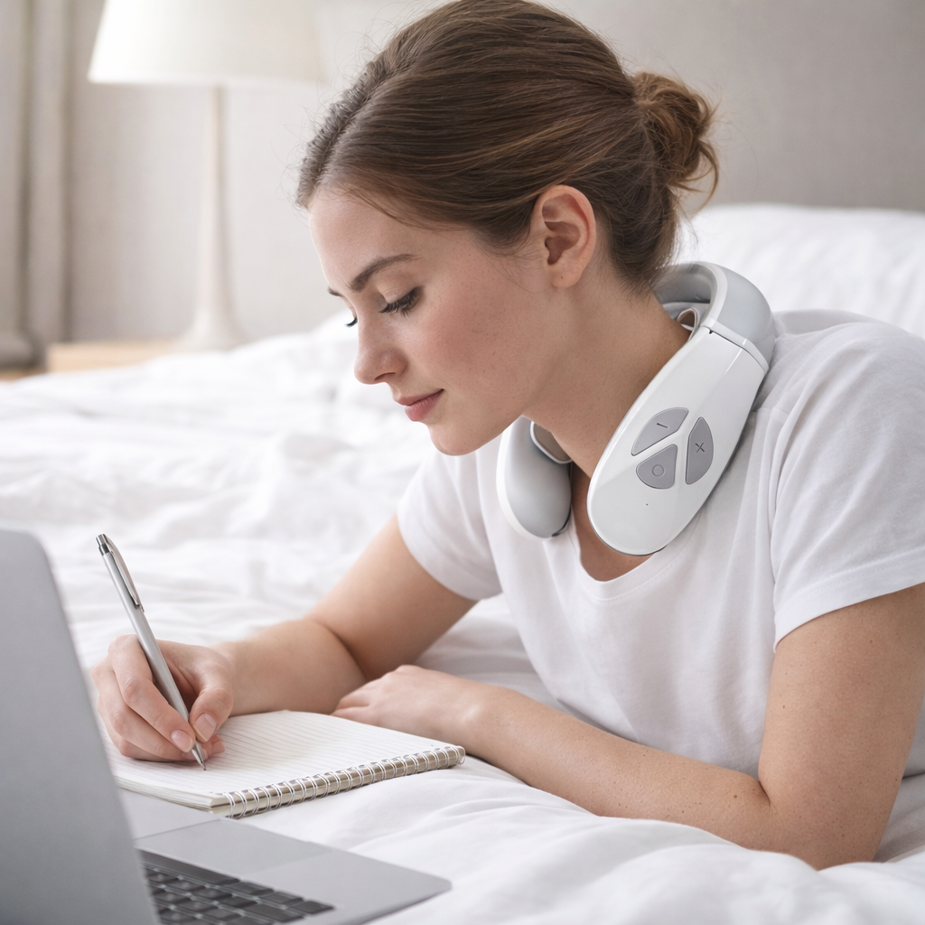 Освободете врата си от напрежението и умората, където и да се намирате. Преносимият масажор за врат NECKMASSAGE е създаден за динамичното ежедневие. Той ви помага да се погрижите за себе си у дома, в офиса, в колата или по време на пътуване. Лекият и компактен дизайн не заема място и така устройството може да ви бъде винаги под ръка, когато имате нужда от облекчение.