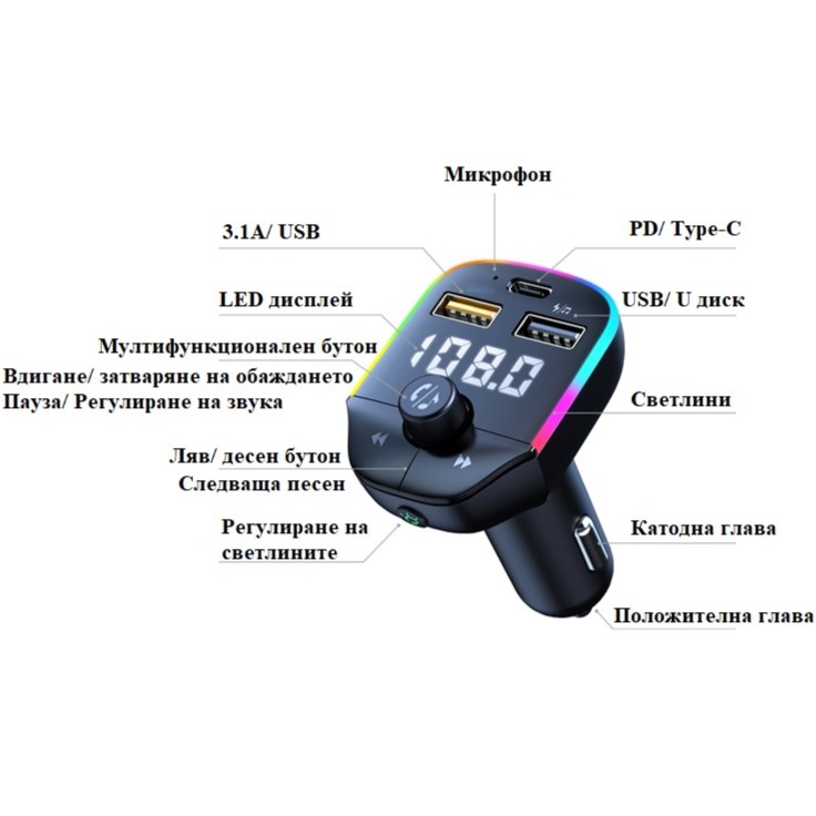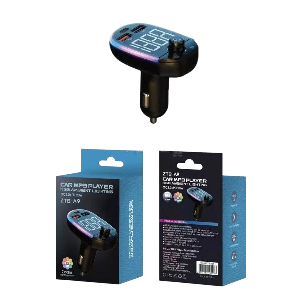 Превърнете всяко пътуване в истинско удоволствие с първокласния Bluetooth FM трансмитер и бързо зарядно ZTB-A9. С иновативна Bluetooth 5.0 връзка, устройството осигурява светкавично сдвояване, стабилна връзка и кристално чист стерео звук. Наслаждавайте се на любимите си песни от смартфон, USB флашка или TF карта, като същевременно предавате музиката директно към аудиосистемата на вашия автомобил чрез FM честота в диапазона 87.5–108.0 MHz. ZTB-A9 разполага с вграден микрофон и CVC технология за потискане на шума, осигурявайки ясни телефонни разговори със свободни ръце. Само с едно докосване можете да отговаряте, затваряте или пренабирете, правейки шофирането по-безопасно и удобно. Оборудван с три порта – PD USB Type-C, USB-A QC3.0 и стандартен USB-A, този трансмитер поддържа бързо зареждане с мощност до 20W, като интелигентно разпознава Android и iPhone устройства. Без усилие зареждате смартфон, таблет, GPS или други устройства, докато сте на път. Ефектното RGB осветление около дисплея ви позволява да избирате между 7 различни цвята, създавайки перфектното настроение в автомобила дори през нощта. Устройството измерва напрежението на автомобилната мрежа и осигурява допълнителна информация за състоянието на акумулатора. Свързването е лесно: включвате трансмитера в запалката, настройвате една и съща FM честота на радиото и сте готови да се насладите на музика без ограничения. Изберете Bluetooth FM трансмитер ZTB-A9 и направете всяко шофиране вълнуващо изживяване.