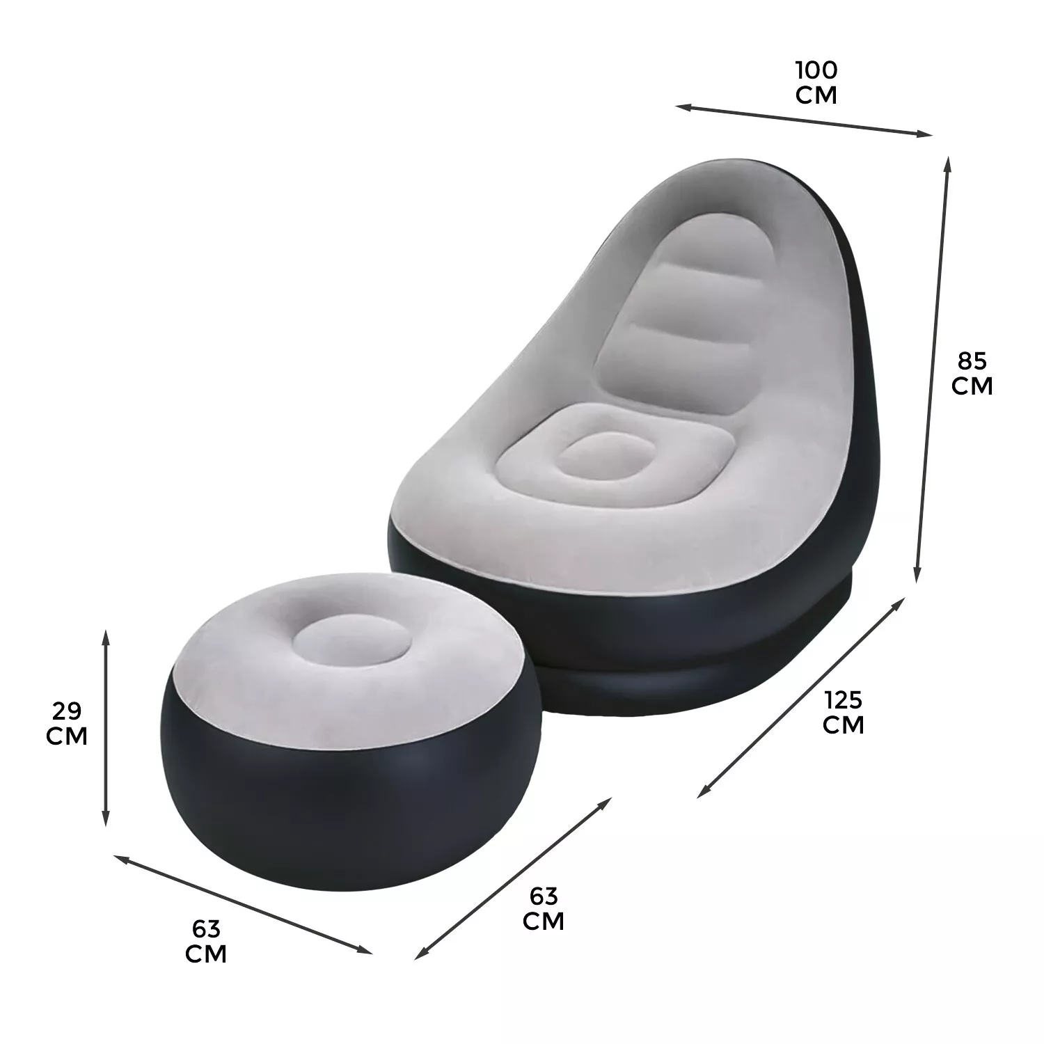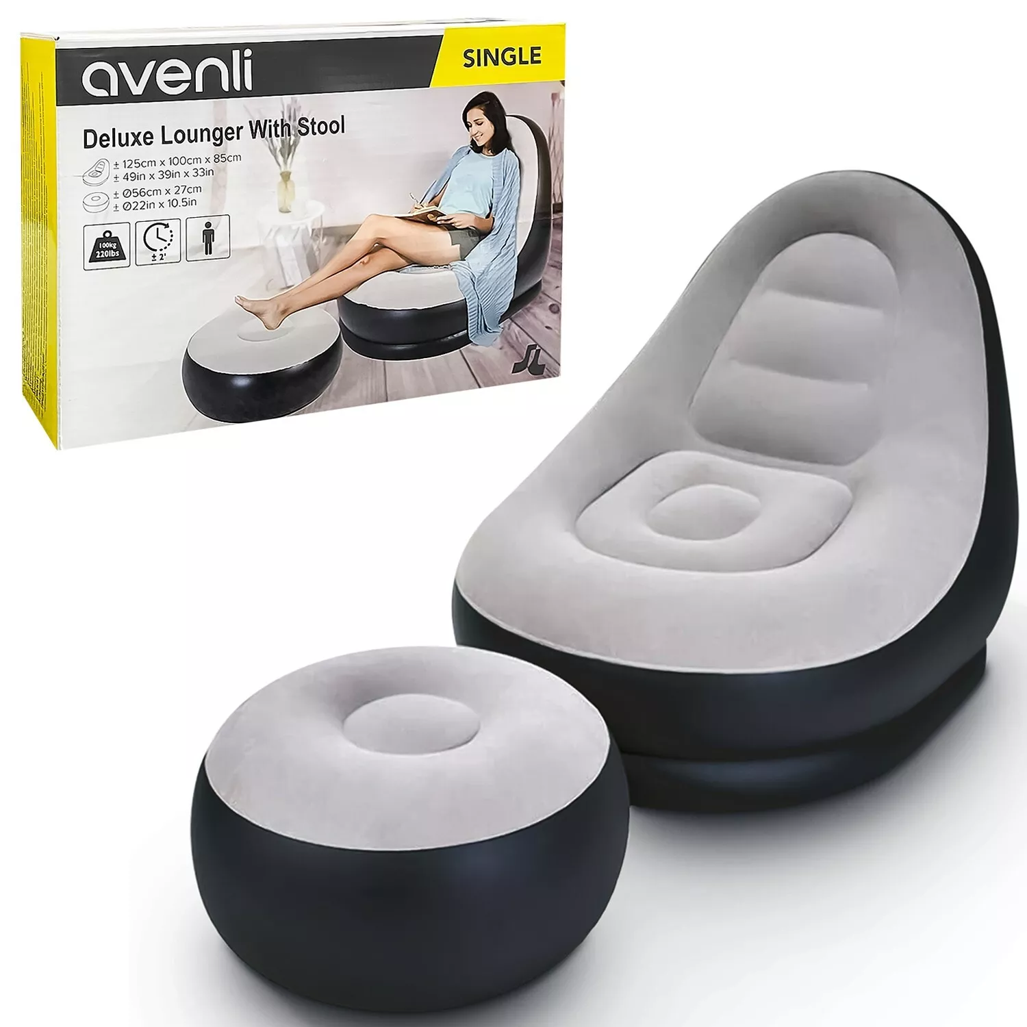 Зад красивия външен вид се крие здрава и устойчива конструкция. Изработен от удебелено, висококачествено PVC, той спокойно издържа натоварване до 150 кг, без да се деформира или преобръща. Благодарение на двойната въздушна колона, получавате стабилност и гъвкавост в едно – където и да го поставите, той е готов за пълна почивка.