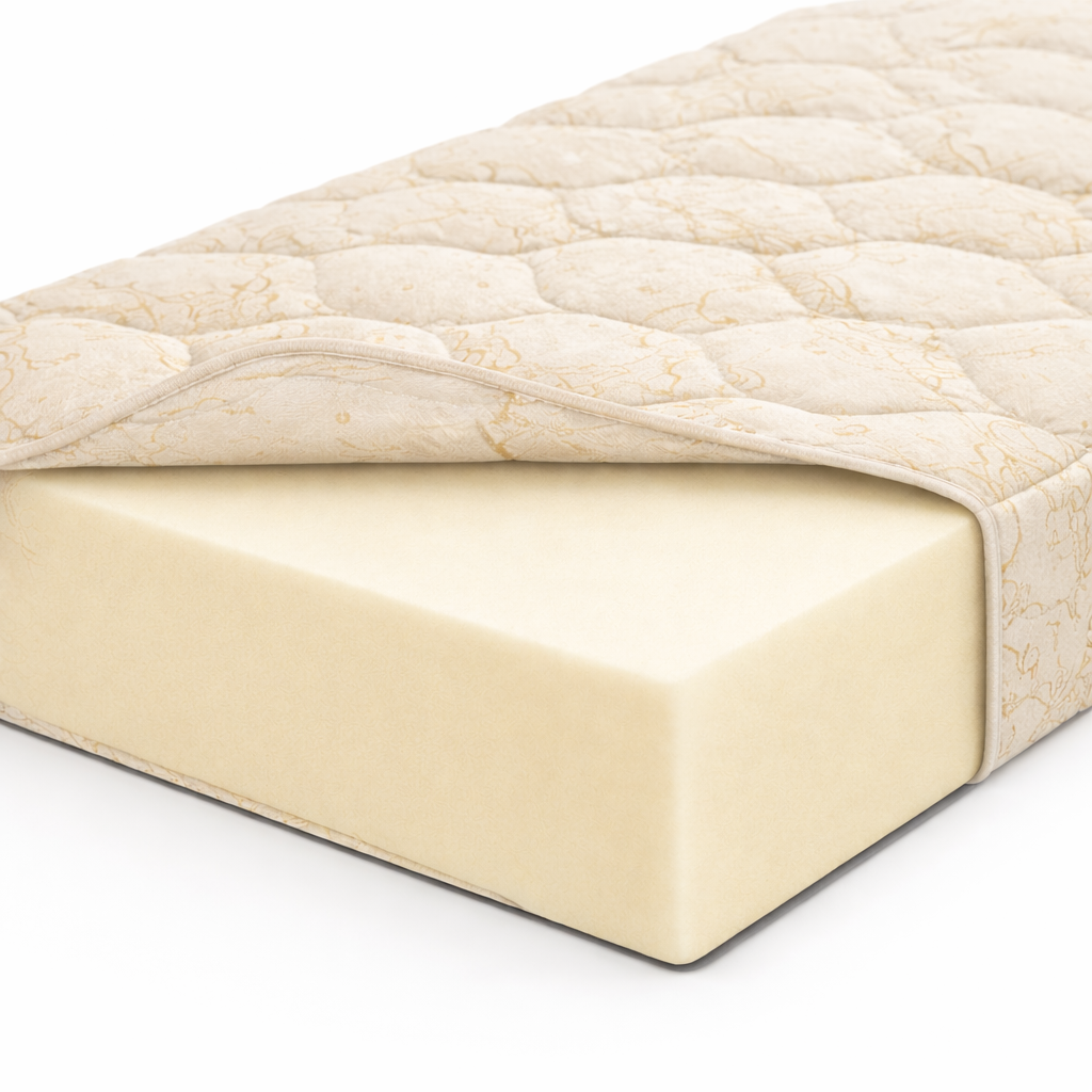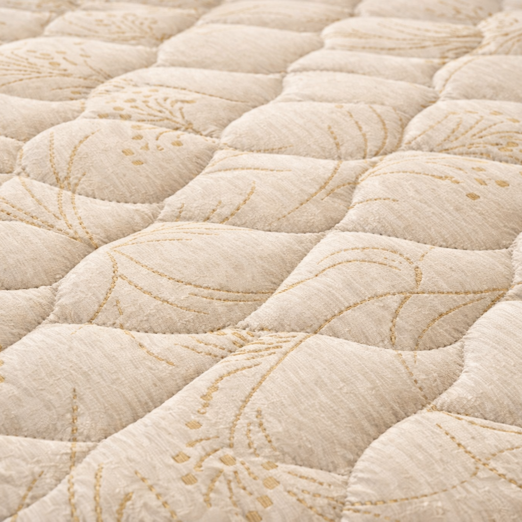 Двулицевата конструкция с борд удължава живота на матрака, а меката жакардова дамаска с вата и памучни влакна гали кожата и създава усещане за уют още при първия допир. Материята е изтъкана по специален начин, за да подпомага спокойния и непрекъснат сън през цялата нощ.