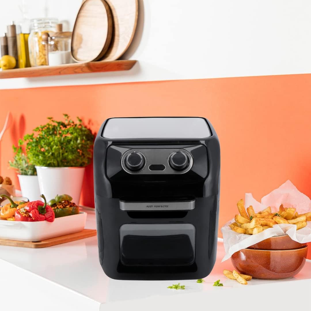 Открийте революцията в готвенето с Just Perfecto 12в1 – перфектното съчетание на здравословно, вкусно и бързо приготвяне на храна. С иновативната технология за циркулация на горещ въздух на 360 градуса, тази фурна прави ястията ви хрупкави отвън и сочни отвътре, като използва минимално количество мазнина или дори никаква. С 12 предварително зададени програми, регулируема температура от 80 до 200°C и таймер до 90 минути, Just Perfecto превръща всяка рецепта в кулинарно съвършенство с лекота и прецизност. Елегантният дизайн от неръждаема стомана ще добави стил във всяка кухня, а лесната поддръжка с незалепващо покритие и аксесоари, подходящи за съдомиялна машина, ще ви спести време и усилия. Насладете се на здравословно готвене, бързо приготвяне и безкрайни възможности – с фритюрник-фурната Just Perfecto вашата кухня никога няма да бъде същата!