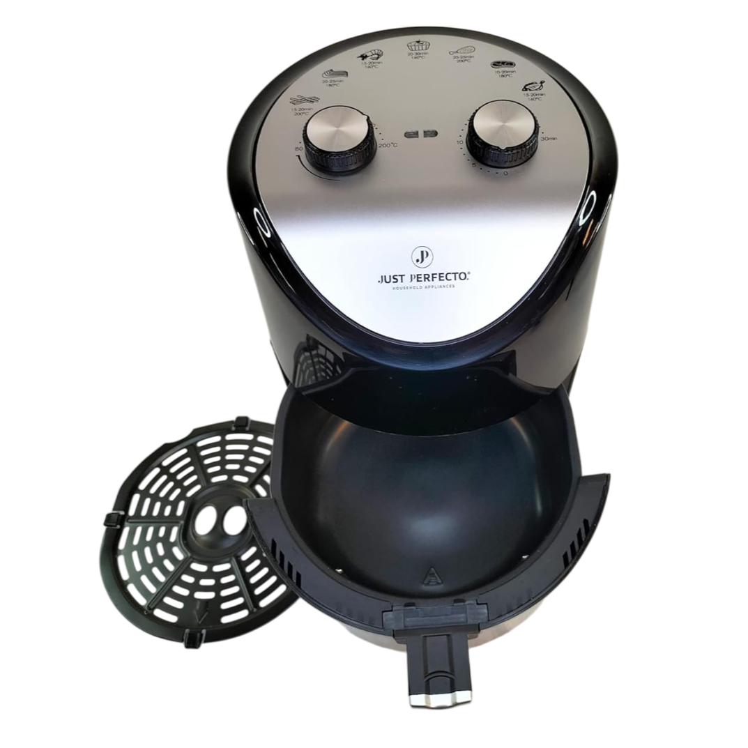 Разширете кулинарните си възможности с фритюрника с горещ въздух Just Perfecto – стилен и компактен помощник, който съчетава здравословното готвене с максимално удобство. С мощност от 1200W и капацитет от 3.5 литра, той е идеален за всяко домакинство, позволявайки ви да приготвяте любимите си ястия бързо, лесно и с минимално количество мазнина.