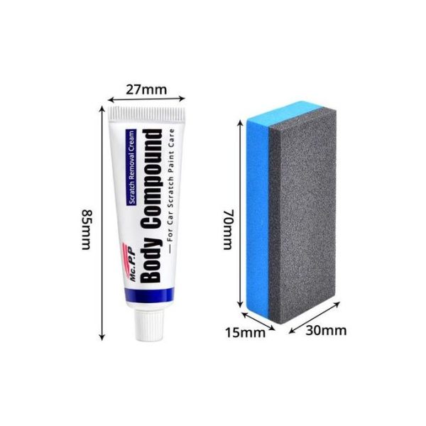 Надраскали сте колата си? Вече няма нужда да се притеснявате за ежедневните леки драскотини! С иновативната абразивна паста можете сами да върнете блясъка на автомобила си бързо и лесно. Тази високоефективна паста комбинира двуфазна формула – запълваща и полираща, която изглажда повърхността и заличава малките несъвършенства. Перфектна за домашна употреба, тя спестява време и усилия. Комплектът включва и гъба с микрофибърно покритие, която е лесна за почистване и многократна употреба. Компактна и удобна, пастата идва в практична опаковка, подходяща за съхранение в жабката или багажника, за да бъде винаги под ръка. Доверете се на качеството и върнете красотата на автомобила си сами!