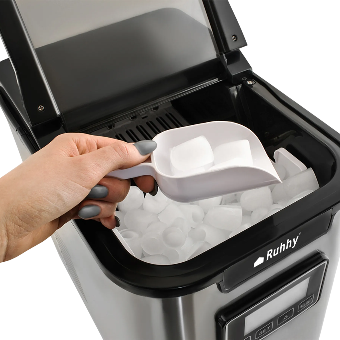 Създавайте до 12 килограма лед на ден и избирайте между малки, средни или големи кубчета – според настроението и случая. Всичко става бързо, лесно и без усилие – първата порция е готова за броени минути. С интелигентния LCD дисплей и интуитивно управление вие имате пълен контрол, а нежните звукови сигнали ви напомнят, когато е време да се насладите на нова доза ледена свежест.