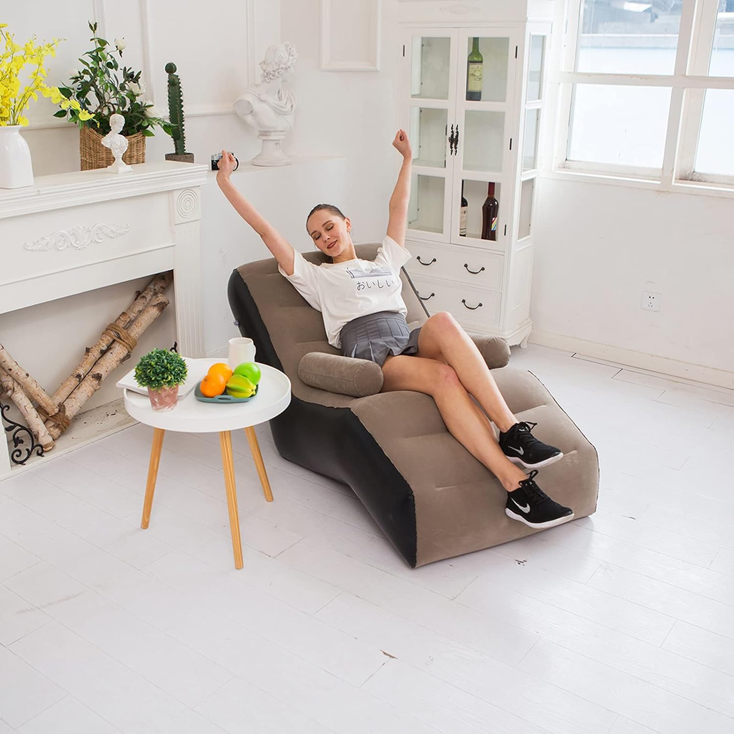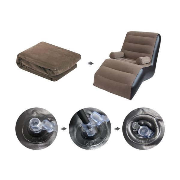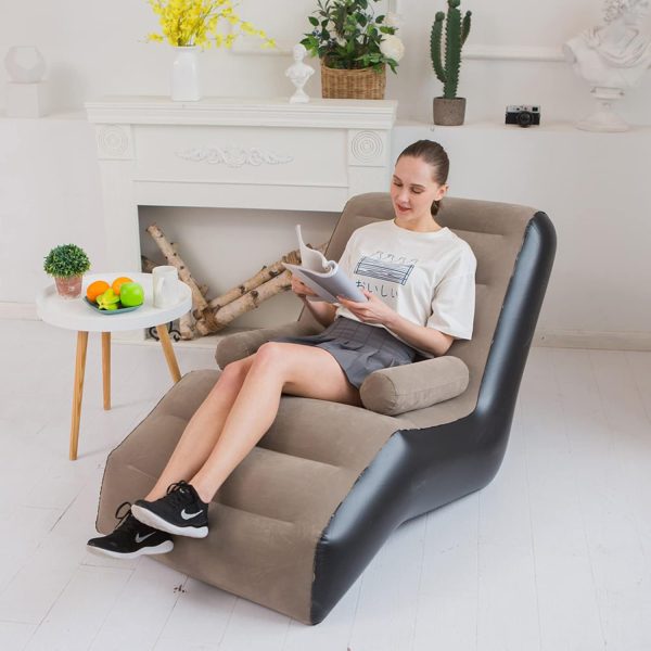 Открийте ново измерение на уюта с надуваемия шезлонг, който съчетава стил, комфорт и практичност в едно. Създаден с нежна велурена повърхност, мека като кадифе, и ергономичен S-образен дизайн, той обгръща тялото ви и осигурява оптимална опора за гърба. Релаксирайте с часове – четете книга, гледайте филм или просто се отпуснете след дълъг ден.