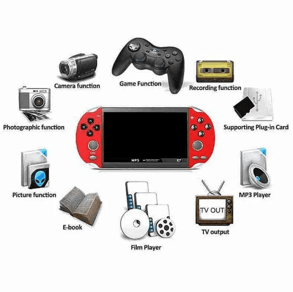 Потопете се в магията на класическите игри с X7 PLUS гейминг конзола, която комбинира ретро гейминг с модерна технология. С 4.3-инчов TFT LCD дисплей, 8GB вътрешна памет и вградени 3000 класически игри, конзолата поддържа Arcade, GBA, SFC, GBS, GB и FC формати за часове безкрайно забавление. С мощна вградена батерия от 1500mAh, устройството предлага до 30 часа в режим на готовност и 8 часа непрекъсната игра. В комплекта е включен USB кабел за лесно зареждане. Освен игрите, X7 поддържа и възпроизвеждане на видео във формати RMVB, MP4 и 3GP, AV TV изход за игра на голям екран, музика, снимки, електронни книги и дори функции като камера, калкулатор, часовник, календар и записвачка. HD камерата и уникалните вибриращи високоговорители с 5.1 съраунд звук осигуряват още по-увлекателно преживяване. Перфектен подарък за деца и любители на ретро гейминга, който комбинира носталгия, забавление и удобство в едно устройство!