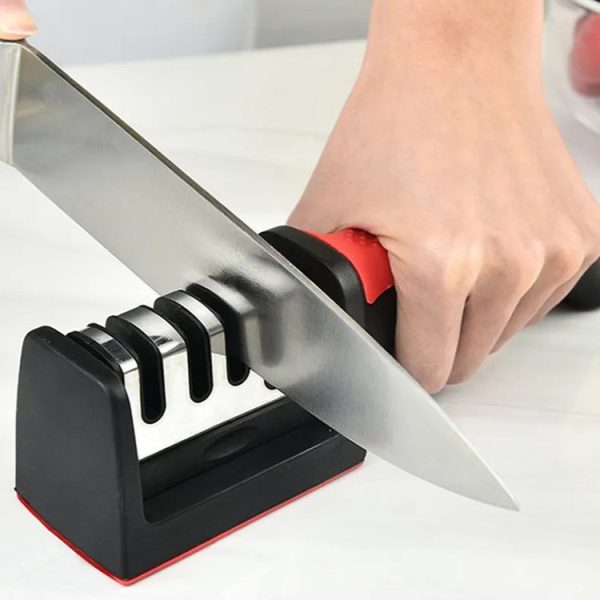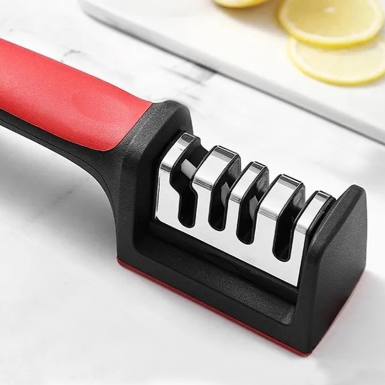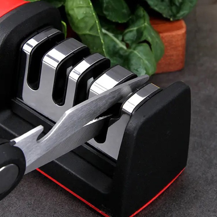 Усещате ли как ножовете ви вече не режат както преди? Вместо да се мъчите с тях и да губите време и нерви, подарете си лекота, бързина и удоволствие в кухнята с това уникално трифазно точило. Само за секунди то връща безупречната острота на всеки нож, за да режете лесно и прецизно, както професионалните готвачи. Създадено е за хора, които ценят качеството, безопасността и ефективността в своя дом. Благодарение на специалния механизъм и внимателно подредените камъни, ножовете ви се заточват под идеалния ъгъл, без никакво усилие и без риск да бъдат повредени. А най-хубавото е, че можете да заточвате дори ножиците си – за да сте готови за всяко кулинарно предизвикателство.