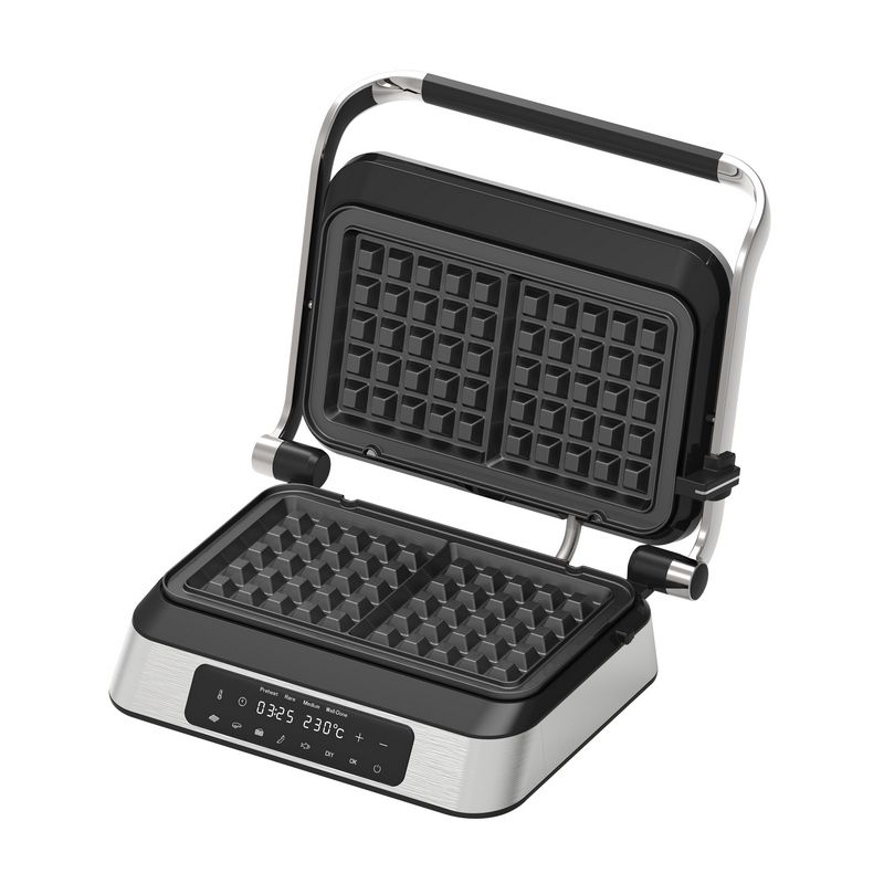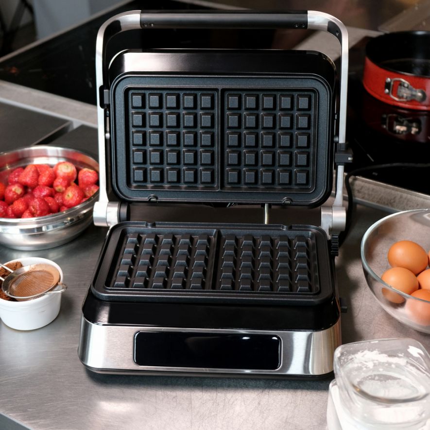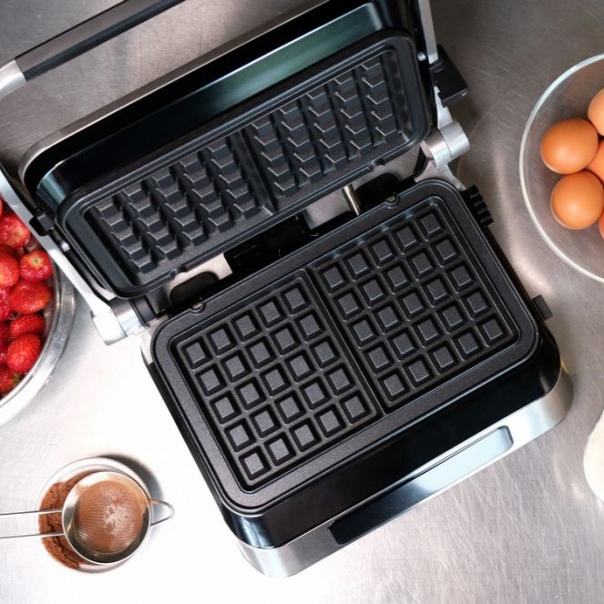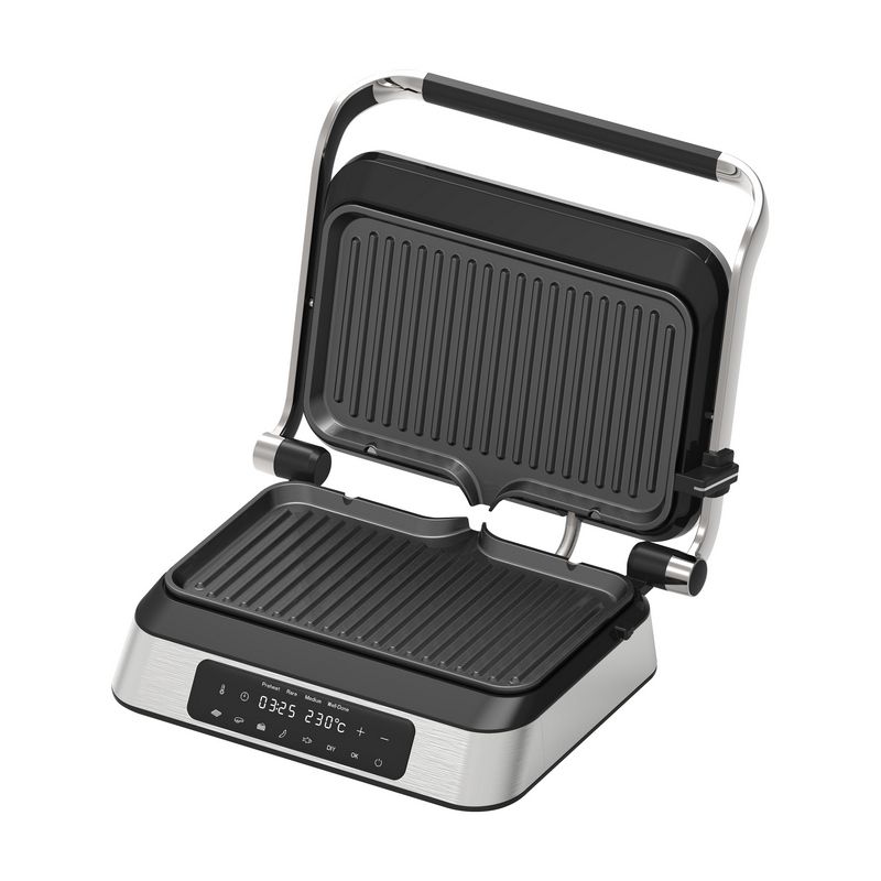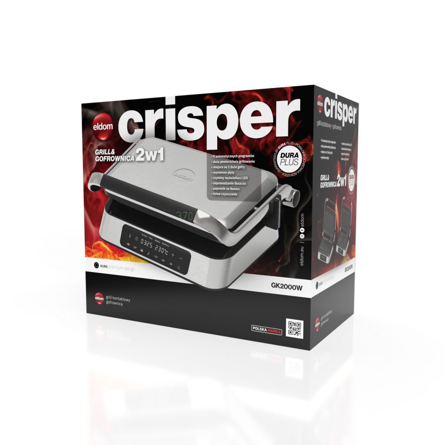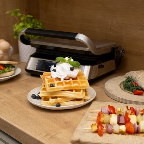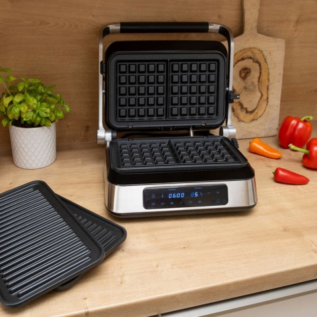 Открийте удобството и гъвкавостта на контактния грил на ELDOM – уред, който съчетава три функции в едно: контактен грил, плосък грил и гофретник. Със сменяемите плочи с незалепващо покритие можете лесно да преминавате от ароматно гриловане на месо и зеленчуци до приготвяне на хрупкави и вкусни гофрети. Този иновативен уред е проектиран, за да ви улесни във всяка стъпка от готвенето. Интуитивният сензорен панел и LED дисплей ви осигуряват лесно управление, докато 9-те автоматични програми и възможността за ръчно настройване ви дават пълен контрол над процеса. Таймерът до 60 минути ви позволява да планирате готвенето с лекота, а практичната система за отвеждане на мазнини осигурява здравословни и вкусни резултати. С мощност от 1800 W се загрява бързо и работи ефективно, което означава, че ще имате готови ястия за нула време. Компактният му дизайн и лесните за почистване плочи правят съхранението и поддръжката му изключително удобни, дори в по-малки кухни. Превърнете готвенето в удоволствие с контактния грил на ELDOM – идеалният уред за здравословни обяди, семейни вечери и вкусни десерти!
