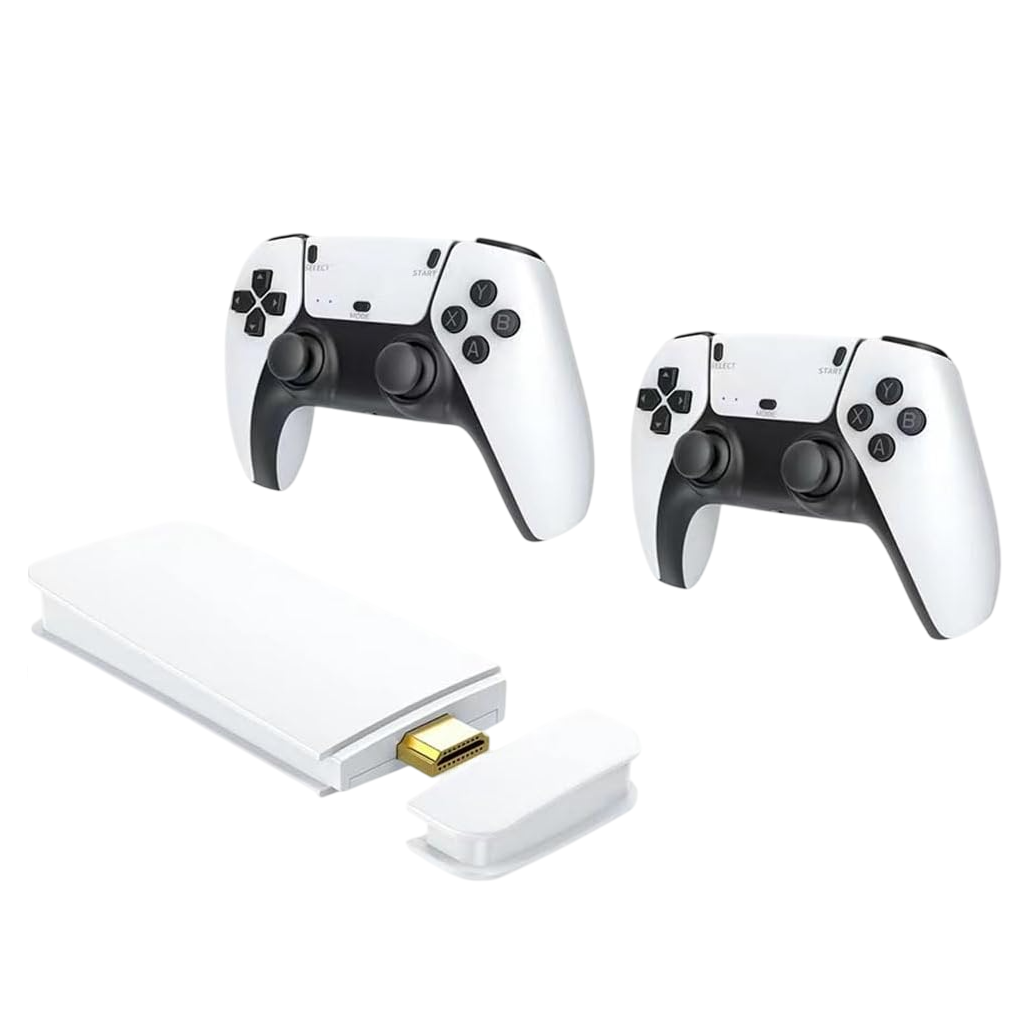 Ретро видео конзола с два безжични контролера и модерна визия