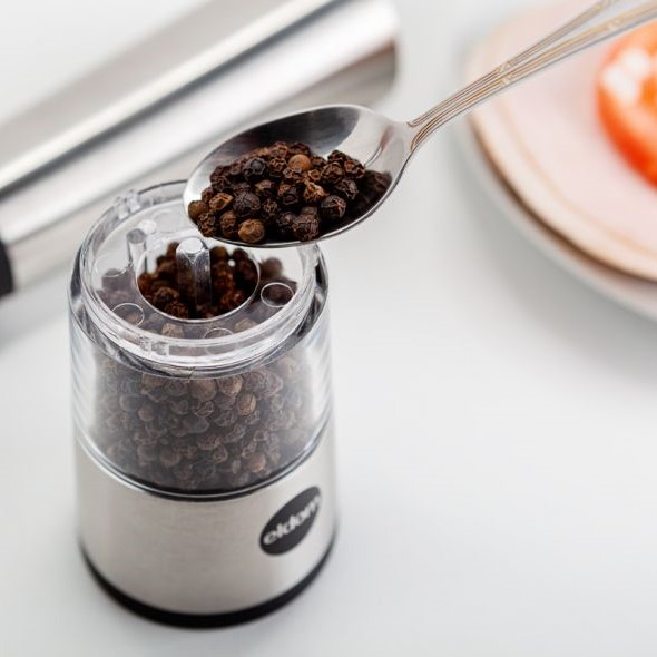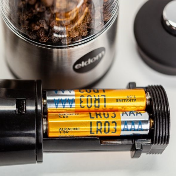 Превърнете всяко ястие в истинско кулинарно изживяване със сета от две електрически мелници ELDOM. Със своя изискан дизайн и корпус от висококачествена неръждаема стомана, тези мелници ще добавят стил и класа на всяка трапеза. Този сет е перфектното решение за смилане на черен пипер, сол или други подправки. Снабдени с керамични механизми, мелниците предлагат прецизност и дълготрайност, като ви позволяват да регулирате степента на смилане според вашите предпочитания – от фино до по-едро. Лесното пълнене на мелниците осигурява удобство и практичност, което ги прави незаменим помощник във вашата кухня. Захранвани с алкални батерии, тези мелници са напълно мобилни и могат да бъдат използвани навсякъде – на барбекю в градината, на пикник сред природата или дори на места без достъп до електричество. Освен това, благодарение на компактния си и изчистен дизайн, те са перфектен акцент за всяка маса, създавайки усещане за изисканост и комфорт. сетът от електрически мелнички на ELDOM е не само практичен и удобен, но и перфектен подарък за всеки ценител на кулинарията!