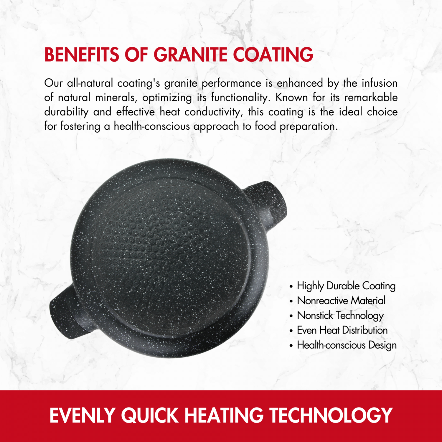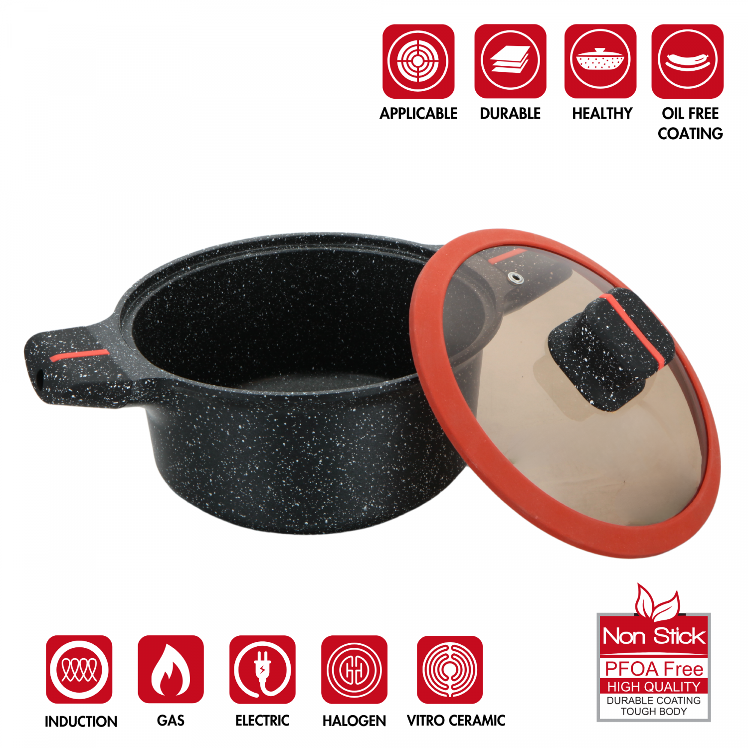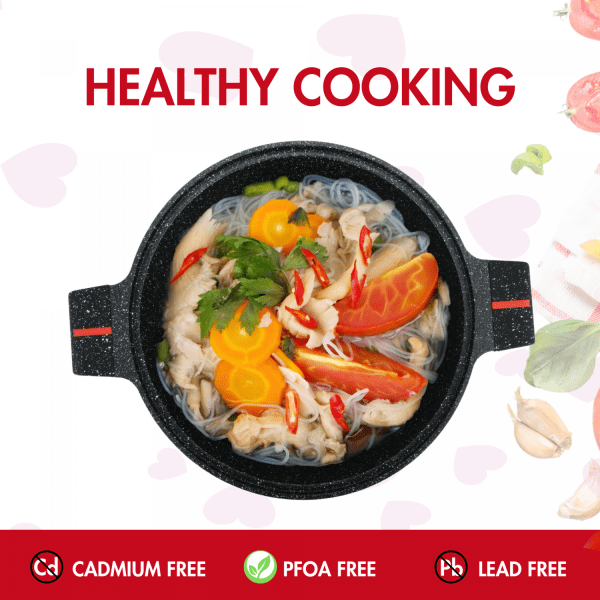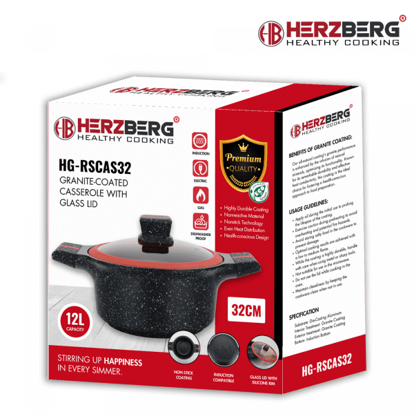 Тенджерата с гранитно покритие Herzberg е съвършеното съчетание на стил, функционалност и здравословно готвене. С диаметър 32 см и капацитет 12 литра, тя е идеална за приготвяне на любимите ви ястия с лекота и удоволствие. Изработена от висококачествен лят алуминий, тази тенджера осигурява равномерно разпределение на топлината, а гранитното ѝ покритие гарантира дълготрайност и възможност за готвене с минимално количество мазнина. Прозрачният стъклен капак със силиконов ръб позволява да следите процеса на готвене, като същевременно запазва всички аромати и сочност на ястието. Съвместима с всички видове котлони, включително газови, електрически и индукционни, тя е незаменим помощник във всяка кухня. Стилният ѝ червено-черен дизайн внася модерна визия, а лесното почистване – с изплакване или в съдомиялната машина – я прави още по-практична. Herzberg е изборът за всеки, който цени качеството и комфорта в кулинарията!