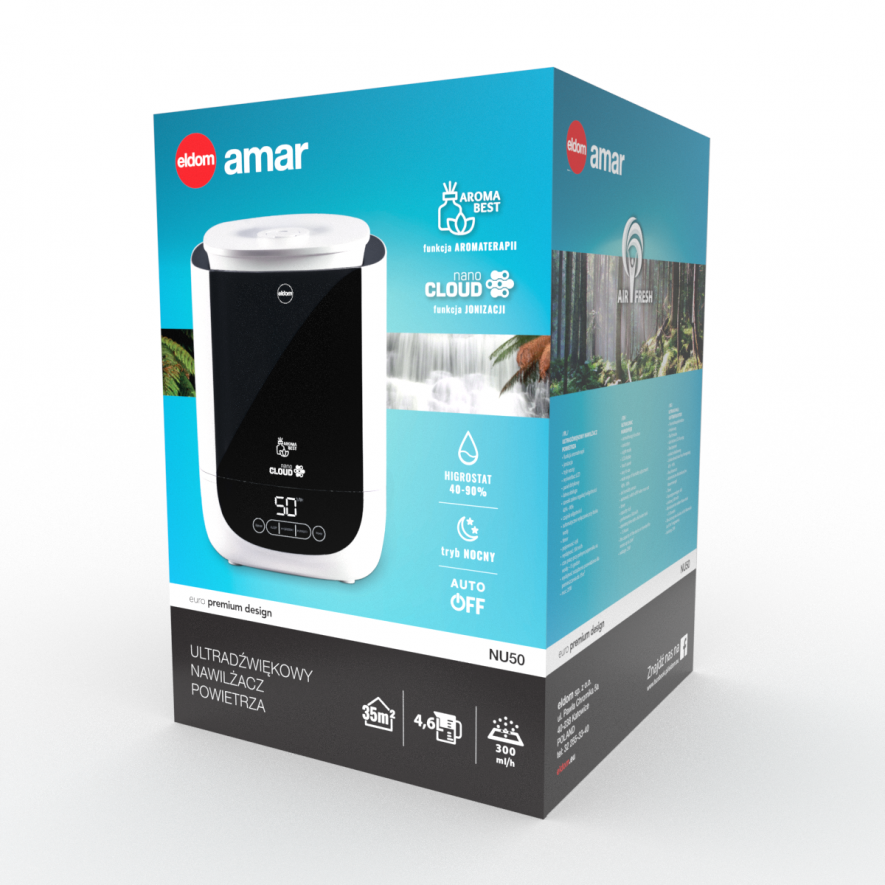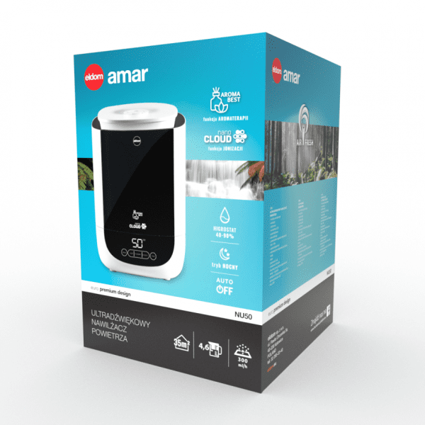 Ултразвуковия овлажнител NU50 е перфектната добавка за вашия дом! Създайте комфортна и здравословна среда с този модерен овлажнител, благодарение на който се намаляват бактериите във въздуха, а функцията за ароматерапия добавя нотка релакс към вашето ежедневие. Със своя капацитет и висока производителност осигурява оптимална влажност (40%-90%) за всяко пространство. Интуитивният LCD дисплей и сензорът за влажност правят управлението лесно и прецизно. Вземете контрол върху въздуха около вас!