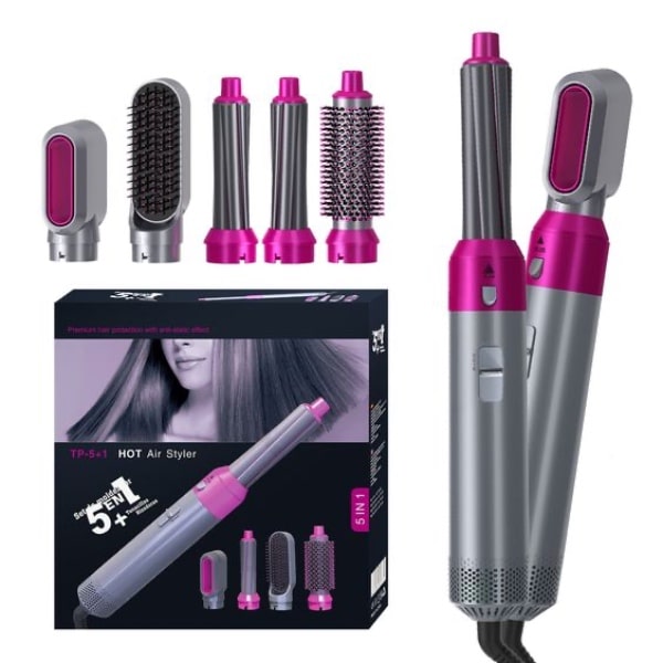 Това е универсален и компактен уред за стилизиране, подходящ за всеки тип коса. С него лесно можете да сушите, изправяте, къдрите, придавате обем и оформяте косата си, като постигате професионални резултати у дома или в движение. Разполага с 3-степенно управление за регулиране на температурата и въздушния поток, както и с лесни за смяна приставки. Лек, удобен и с практичен кабел, въртящ се на 360 градуса, уредът за стилизиране на коса 5в1 осигурява бляскава и здрава коса за минимално време!