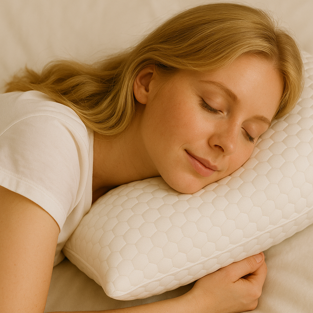 Калъфът е изработен от специален Bubble релеф, който придава лек масажиращ ефект при всяко движение на главата. Тази текстура подпомага по-доброто кръвообращение и предлага приятно усещане при допир. Белият му цвят придава елегантен вид, а материята е хипоалергенна, което я прави подходяща дори хора за чувствителна кожа, алергии и дерматит. Той се сваля лесно и може да се пере както на ръка, така и в пералня, гарантирайки безупречна хигиена. Памучната тъкан допълва усещането за естествена грижа и комфорт.